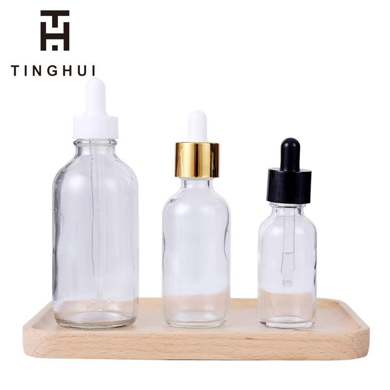 1oz 2oz 4oz 8oz 16oz 32oz Essential Oil Bottles Empty Transparent Clear Amber Glass Round Boston Dropper Bottle With Dropper