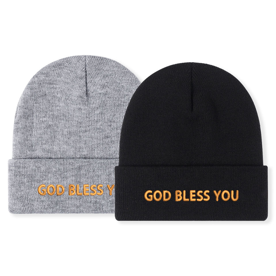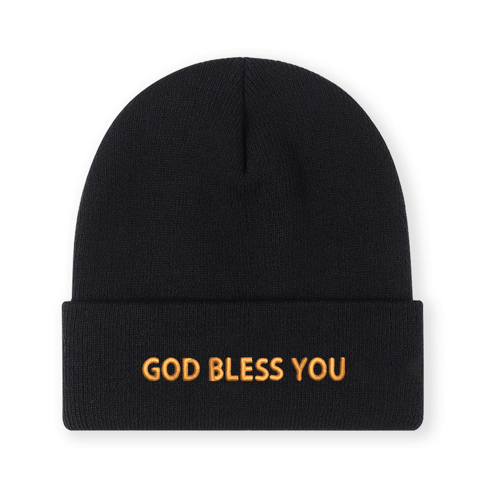 1pc'Bless You' Embroidered Beanie Soft Stretchy Lightweight Winter Hat for Men & Women, Outdoor Hip Hop Fashion