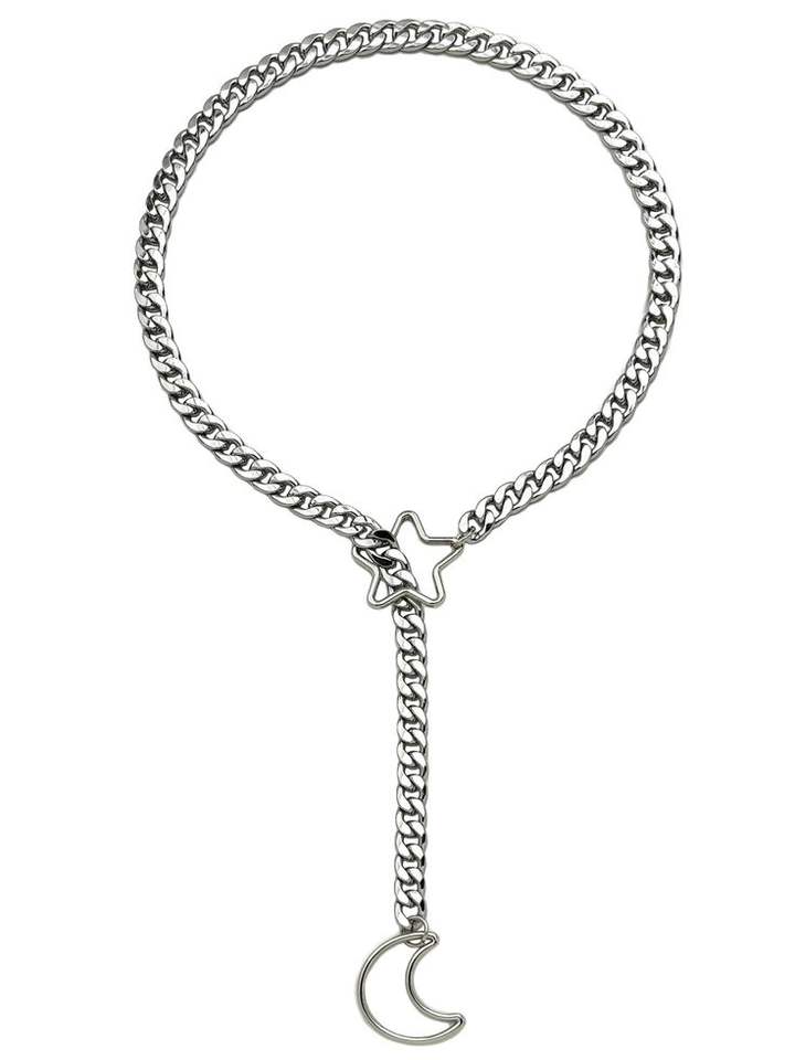 1pc Ladies Vintage Star Moon Stainless Steel Necklace Simple All-in-one Ladies Pendant Necklace Accessories