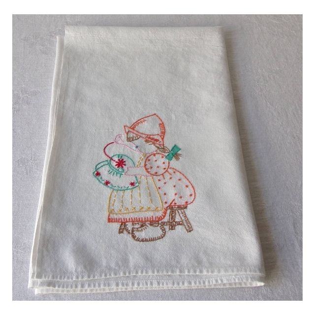 1pc White Adorable Border Floral Flat Design Hand Embroidered Reusable Eco-Friendly Flour Sack Towels Halloween Kitchen Decor