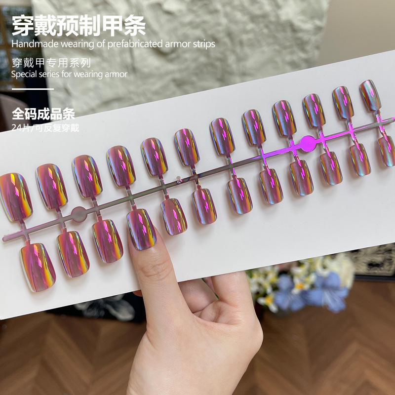 1ridescents Laser Wearable Electroplated Aurora Cat Eye Export Hot Selling Fake Nails Detachable Nail Tips Wholesale