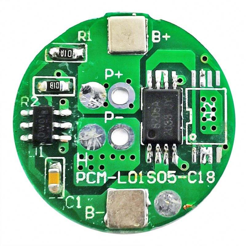 1s 2.5A Round BMS for 3.6V 3.7V Li-ion/Lithium/Li-Polymer 3V 3.2V LiFePO4 Battery Pack Size Diameter 18mm (PCM-L01S05-C18)