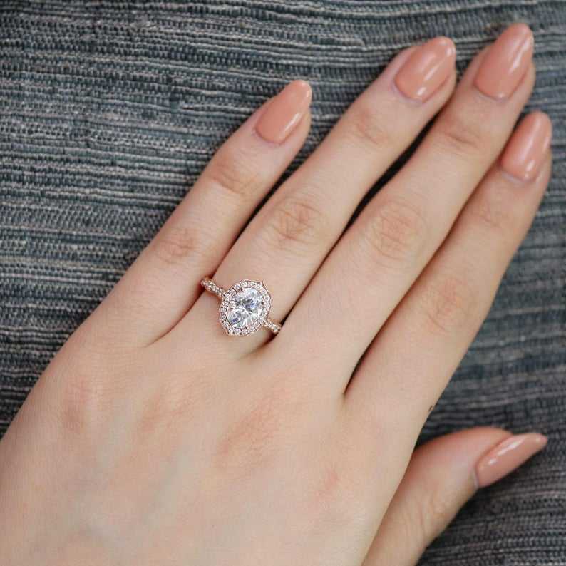 Genuine White Oval Shape Moissanite Ring 14k Rose Gold