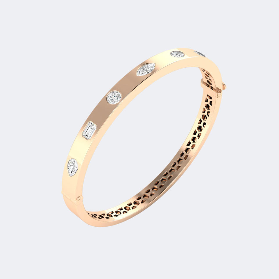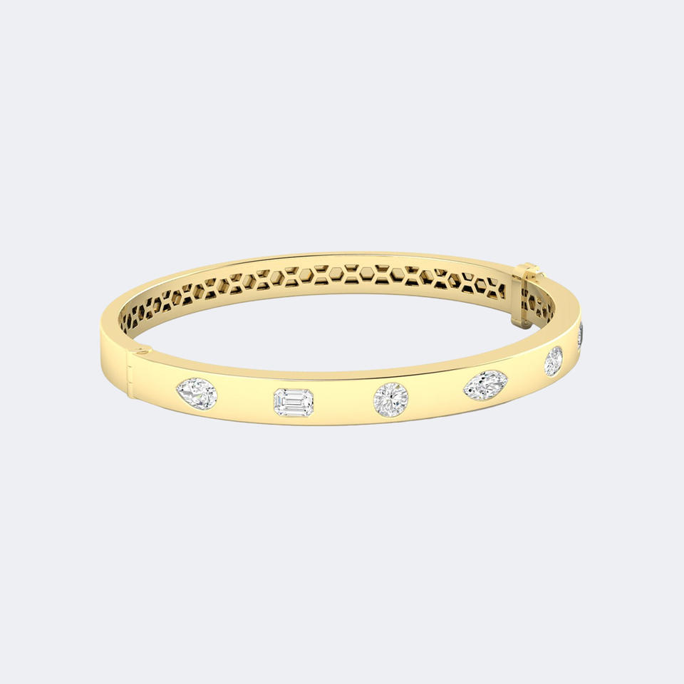 2.00CTW Mixed Cut Lab Diamond Station Bangle Gold EF Color VVS2 Multi Shape Brilliant Cut Prong Set Cuff Bracelet Jewelry