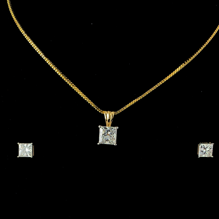 2.00ct Princess Cut Lab-Grown Diamond Pendant with 1.00ct Diamond Studs in Classic 18kt Gold Plating