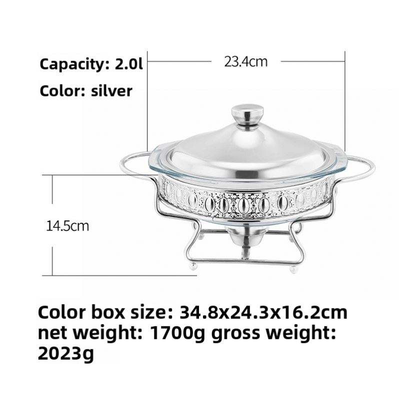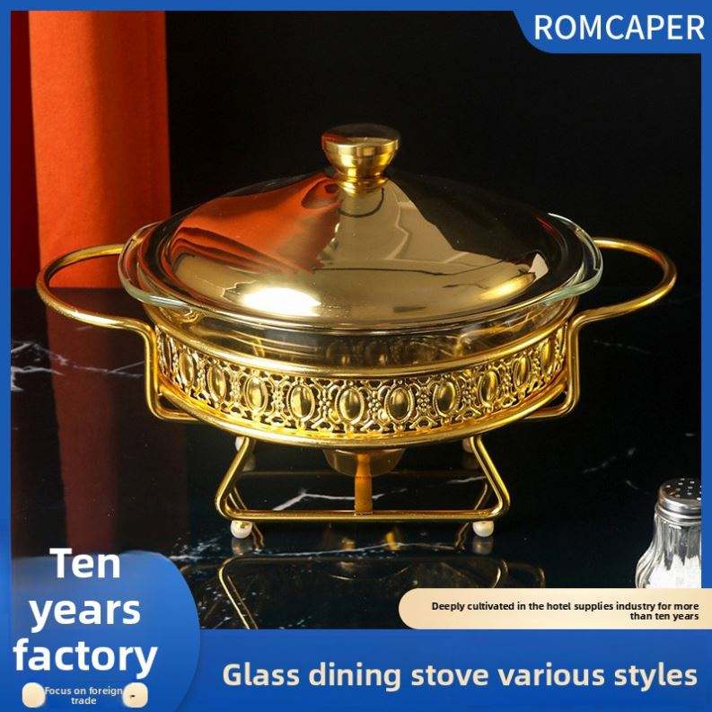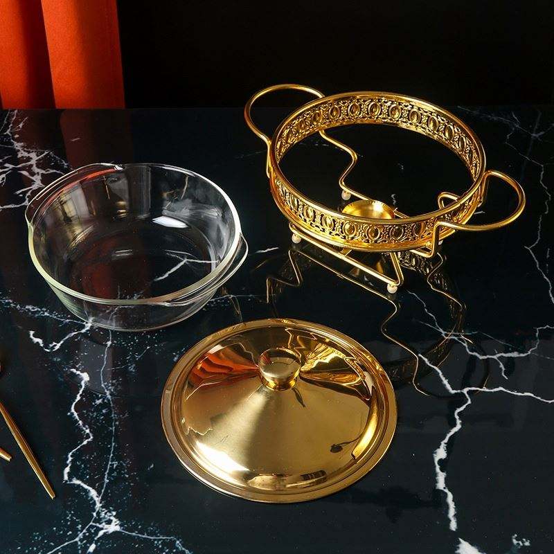 2.0L Gold Alcohol Round Food Heating Chafing Dish Foreign Trade Glass Buffet Tableware Stove