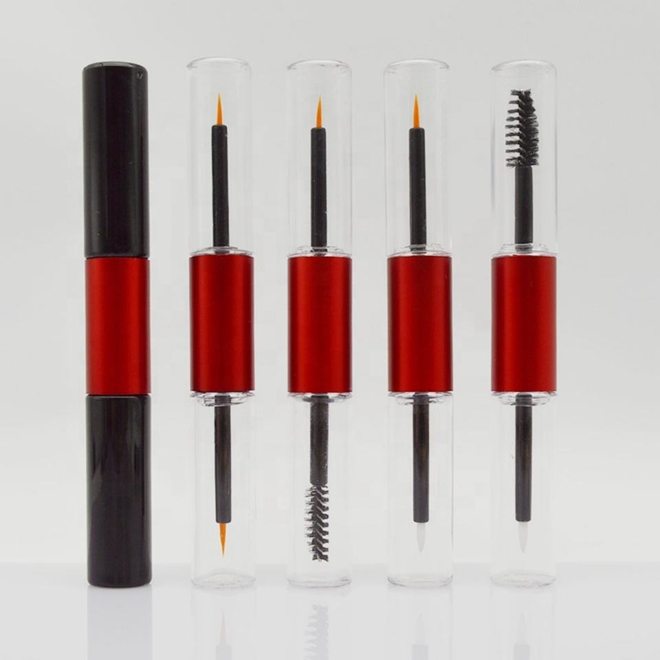 2 1 Aluminum PETG Eyelash Serum Bottle Wholesale Dual Metal Mascara Tube ABS Cap Screen Printing for Eyeliner Mascara Packaging