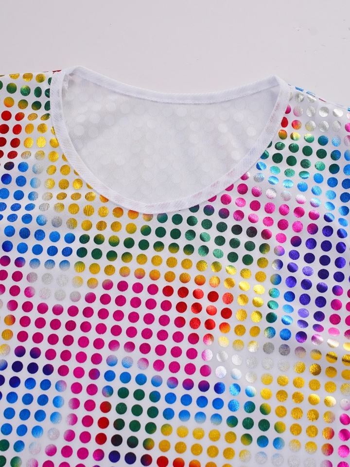 2-10 Kids Boys Girls Stylish Performance Clothes Shiny Sequins Decorated Solid Color Top For Dance Wear Ball Festival Party Wear