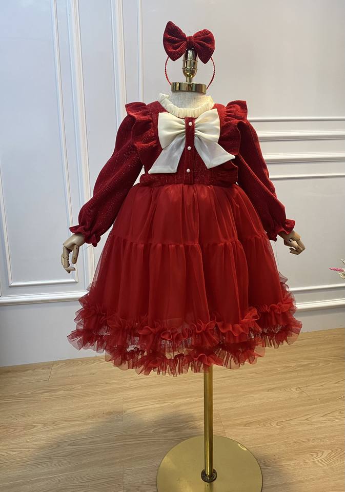 2-12 Year Old Children's pink champagne Elegant Long-sleeved High Collar Lace Sequin Cute Flower Girl Princess Dress