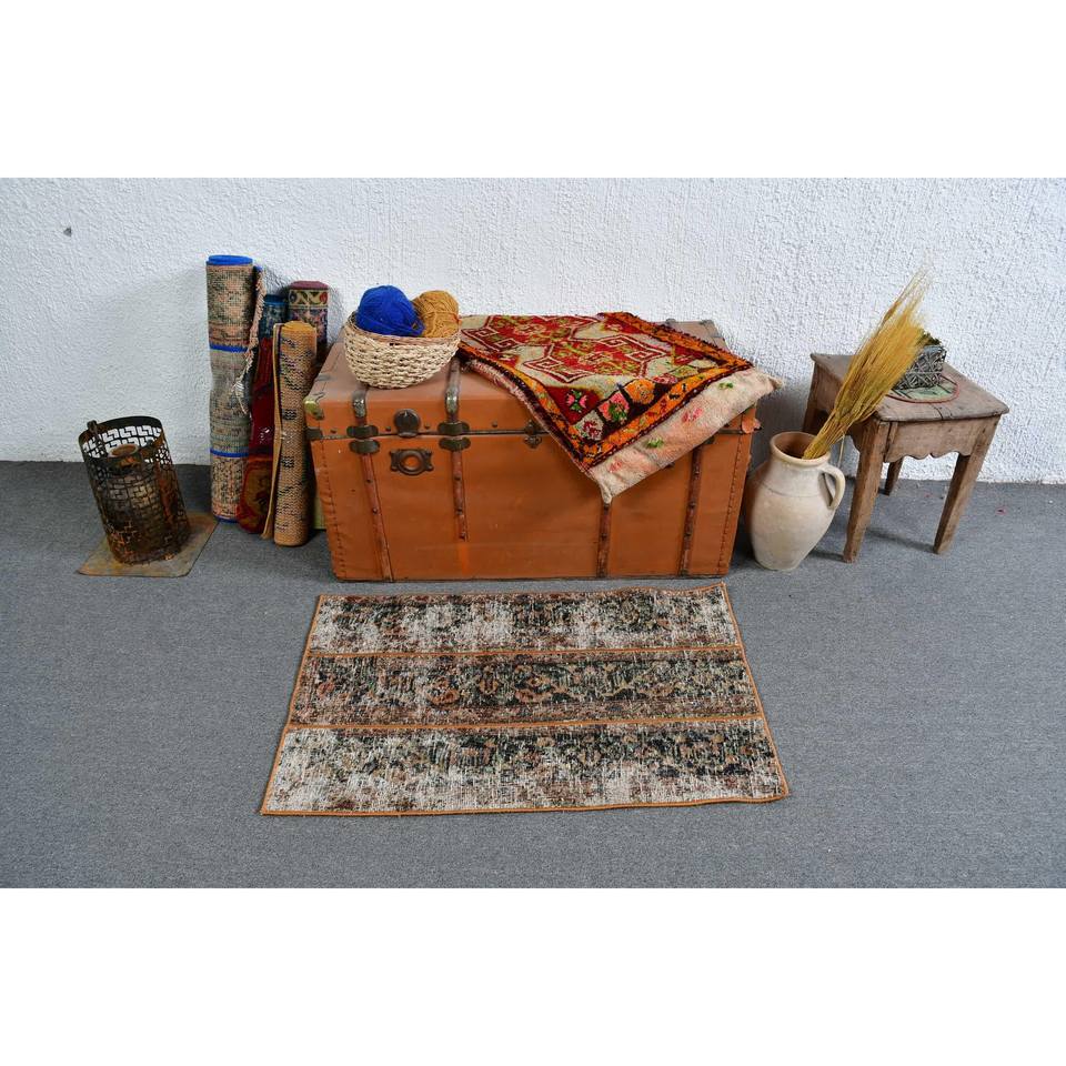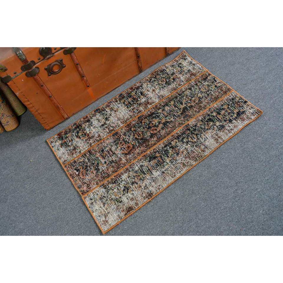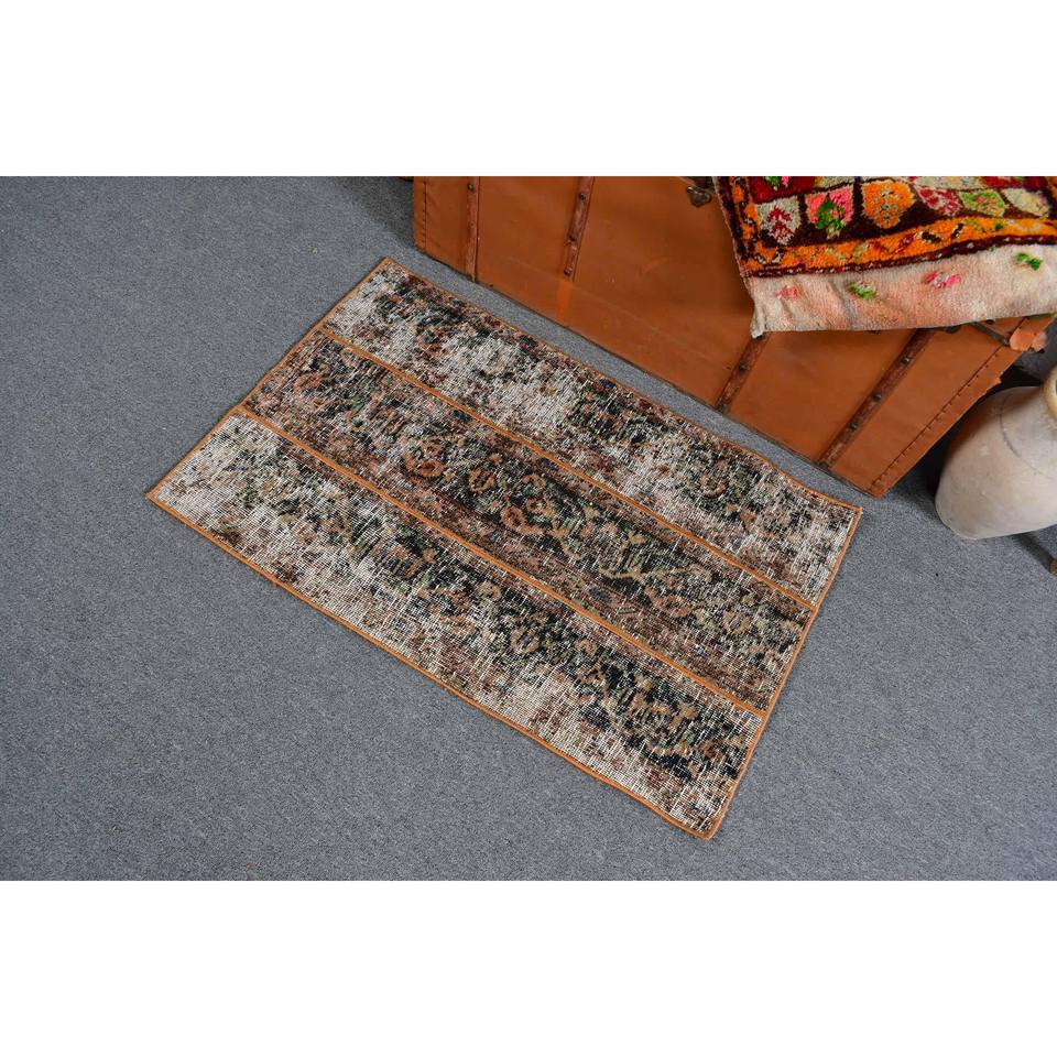 2.1x3.2 ft Rug, Turkish Vintage Small Rug, Brown Wool Rug