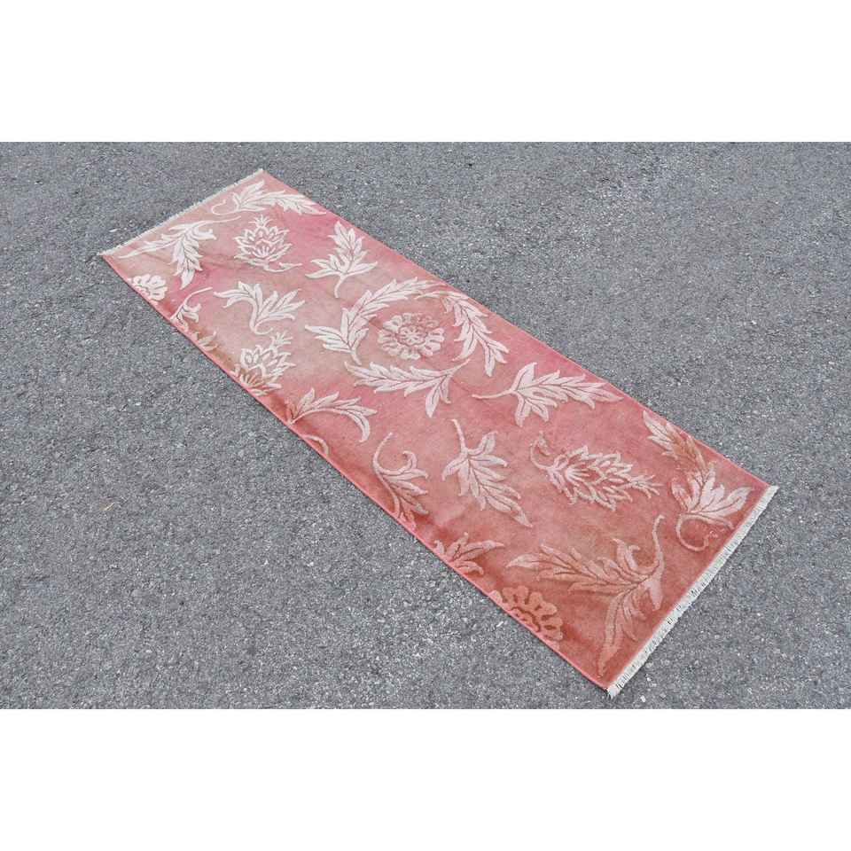 2.1x6.3 ft Rug, Turkish Vintage Rug, Red Floral Wool Rug
