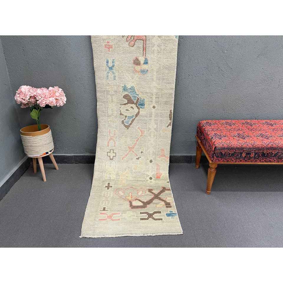 2.1x8.1 ft Rug, Turkish Vintage Rug, Brown Patchwork Wool Rug