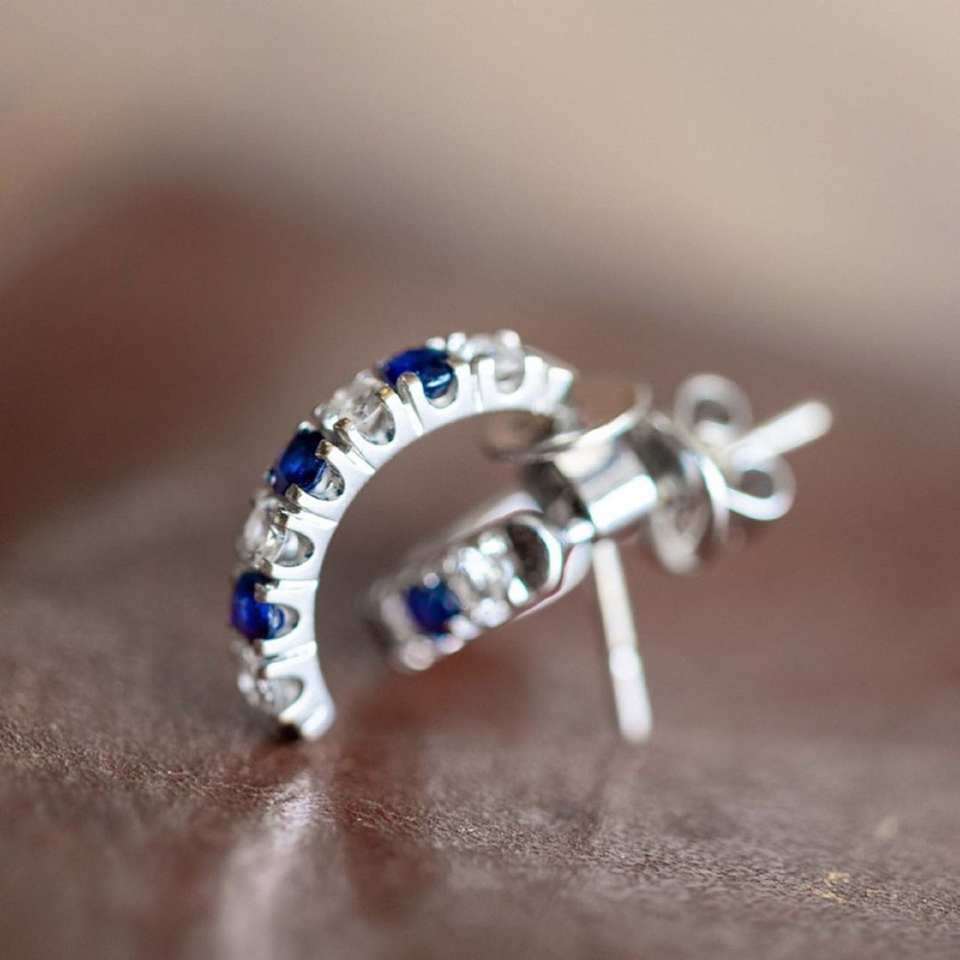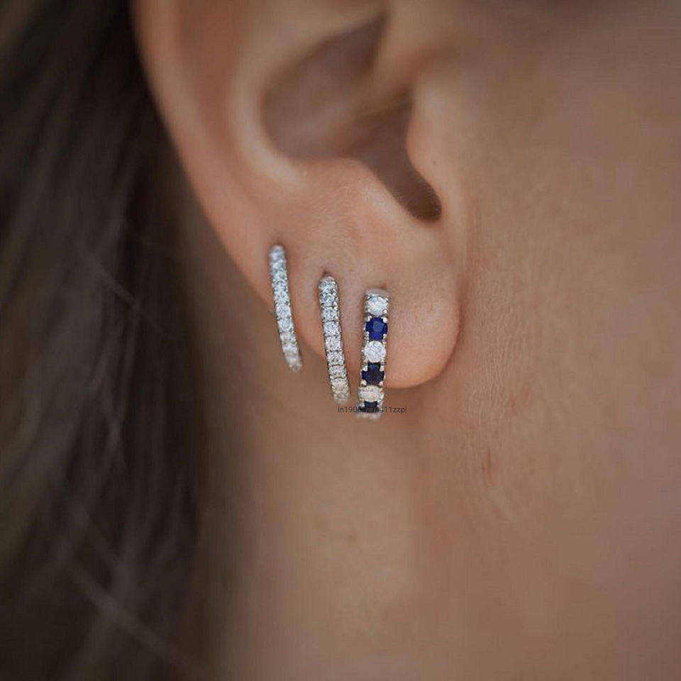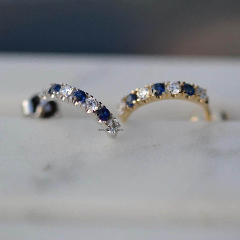 2.2MM Round Cut Moissanite Accents 0.42TC Blue Stones Sterling Silver Stud Earrings Classic Party Gift for Women