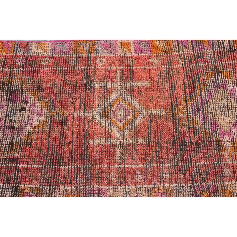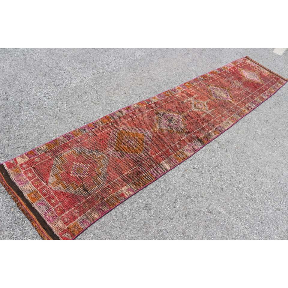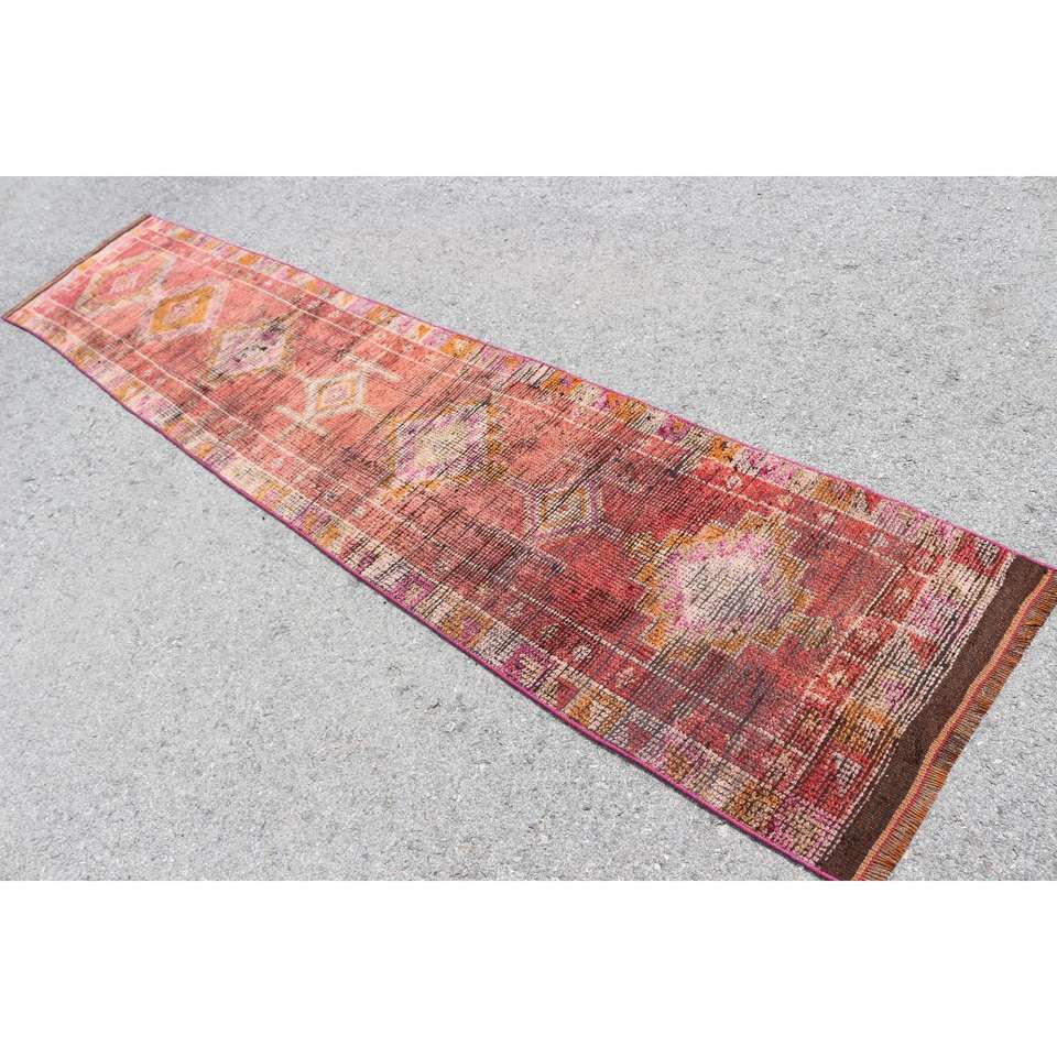 2.2x10.8 ft Turkish Rug, Vintage Runner Rug, Red Pink Check Wool Rug