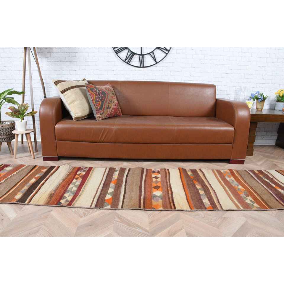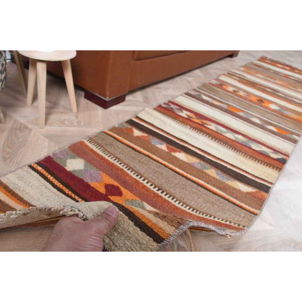 2.2x10 ft Turkish Rug, Runner Vintage Rug, Brown Check Rug