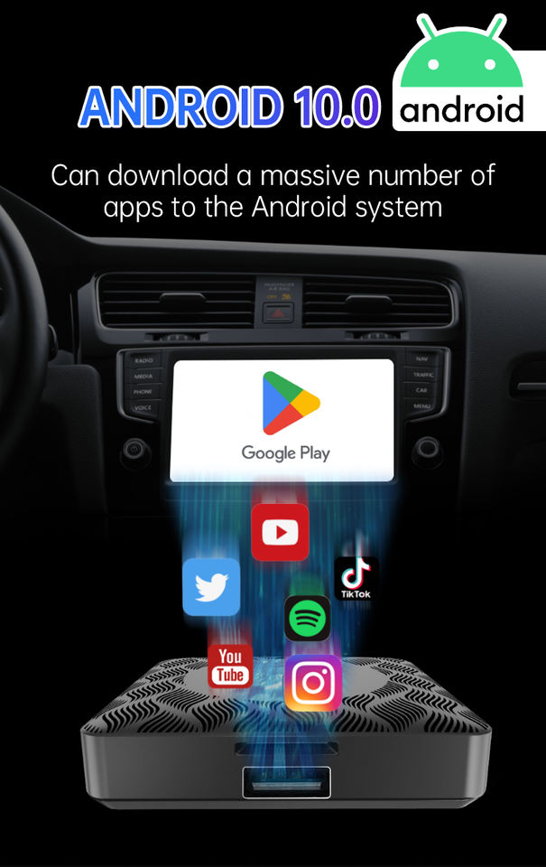 2+32G Plug Play TrolinkTek TAA06 Quad-core Auto AI Box Android 10 System Wireless CarPlay Adapter 1-Year Warranty for Google