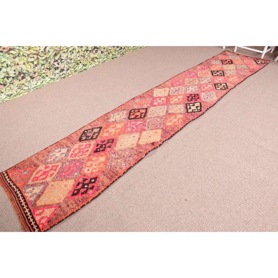2.3x12.8 ft Turkish Rug, Herki Rug, Red Moroccan Rug Wool