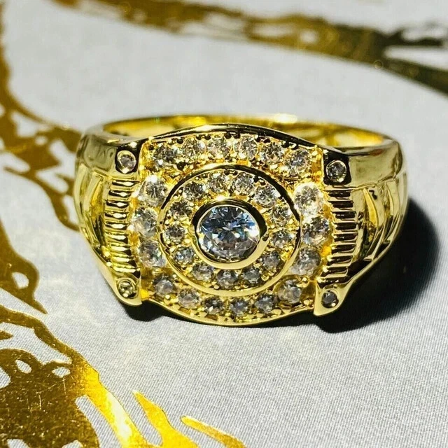14K Yellow Gold Plated 2.40Ct Round Cut Real Moissanite Men's Pinky Wedding Ring