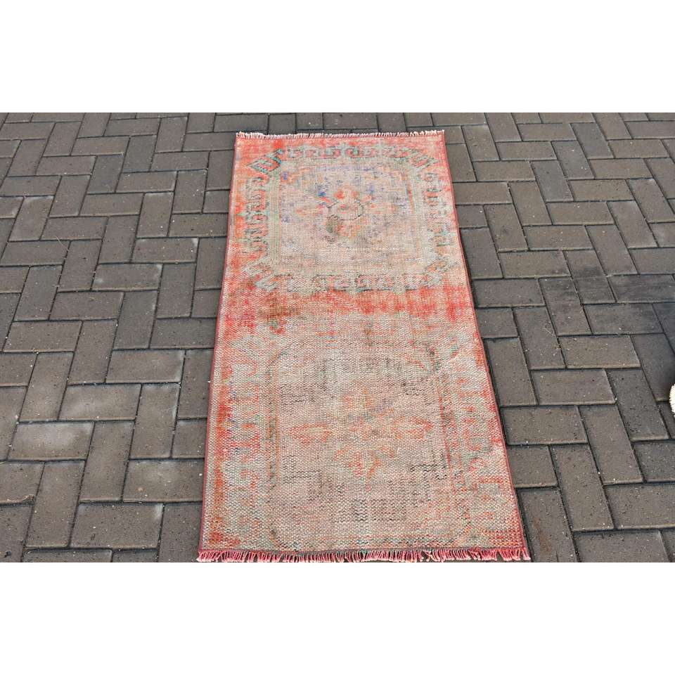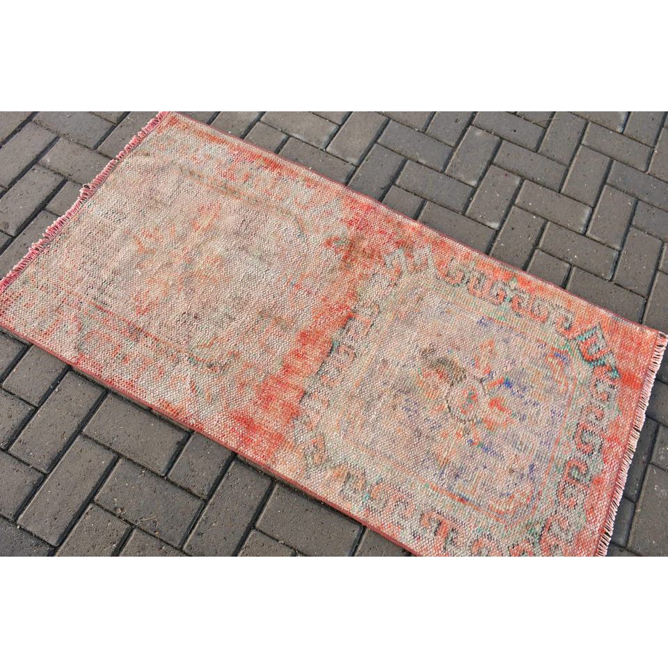 2.4x4.6 ft Turkish Rug, Vintage Small Rug, Red Blue Polka dot Wool Rug