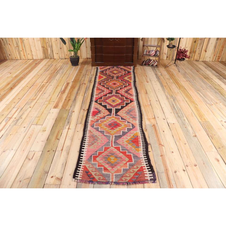 2.4x9.1 ft Rug, Turkish Vintage Runner Rug, Red Kilim Wool Rug