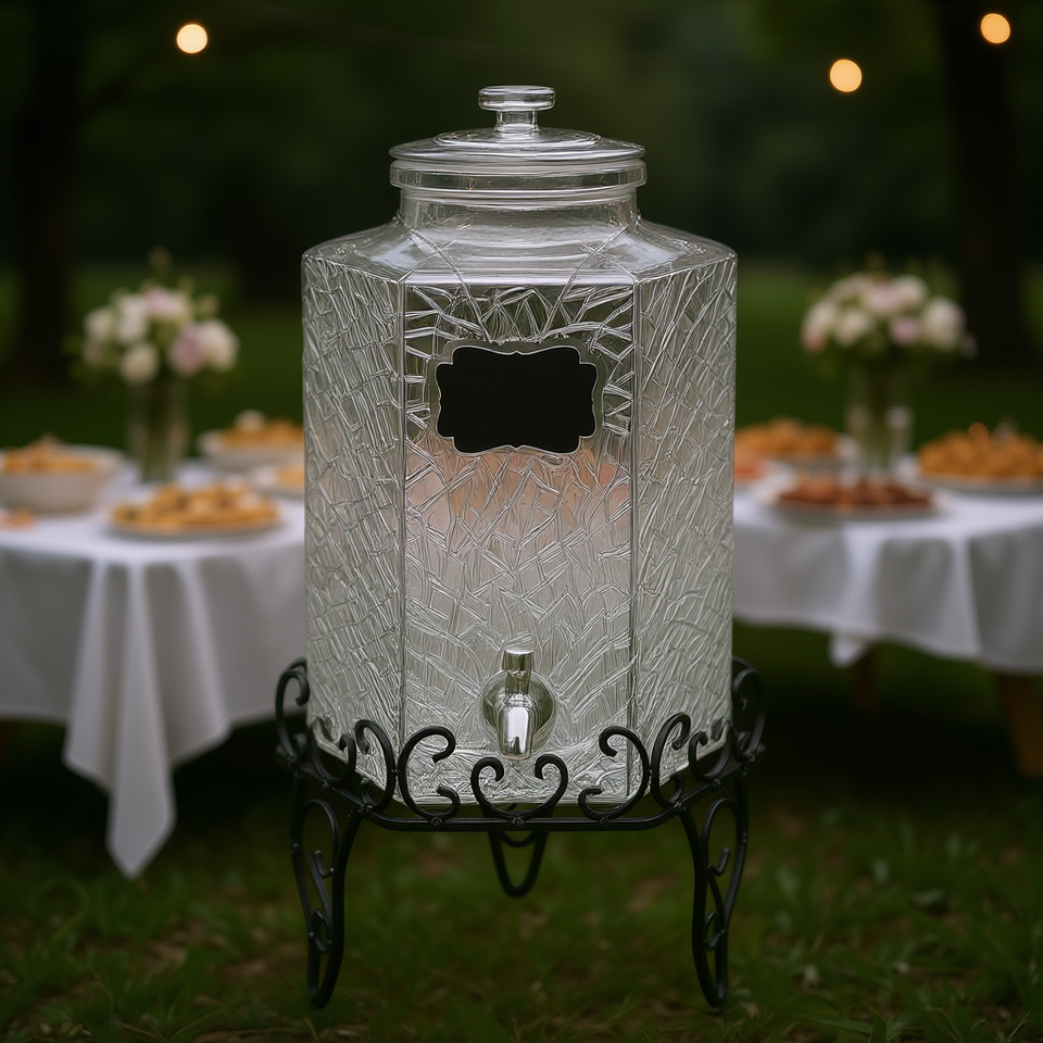 Glass Beverage Dispenser 2.5 Gal With Stand Rectangle Shape Food Grade Standard Tap For Parties