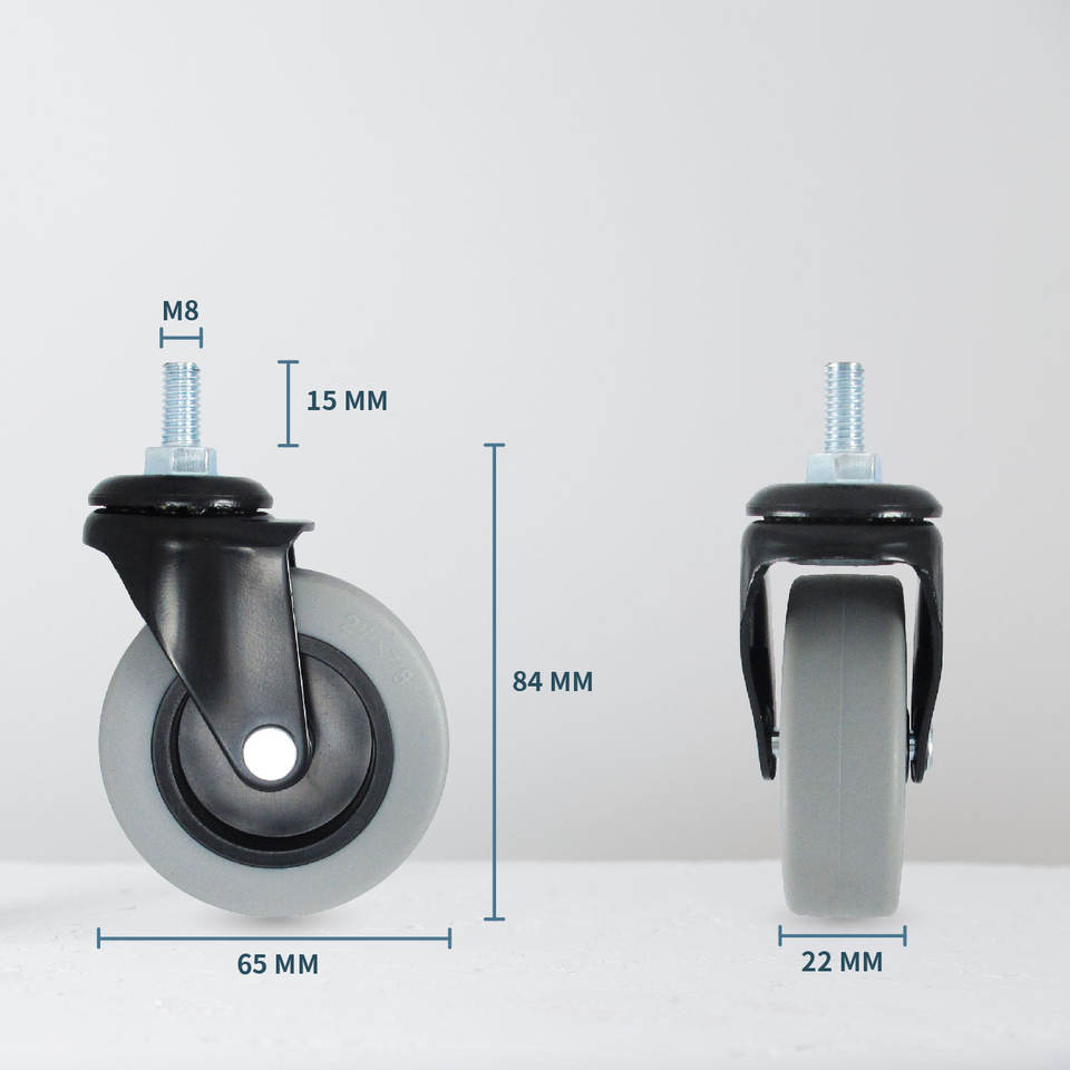 Product name:Light Duty Caster Wheel 2.5 Inch Size M8 Thread Stem Rubber Wheels