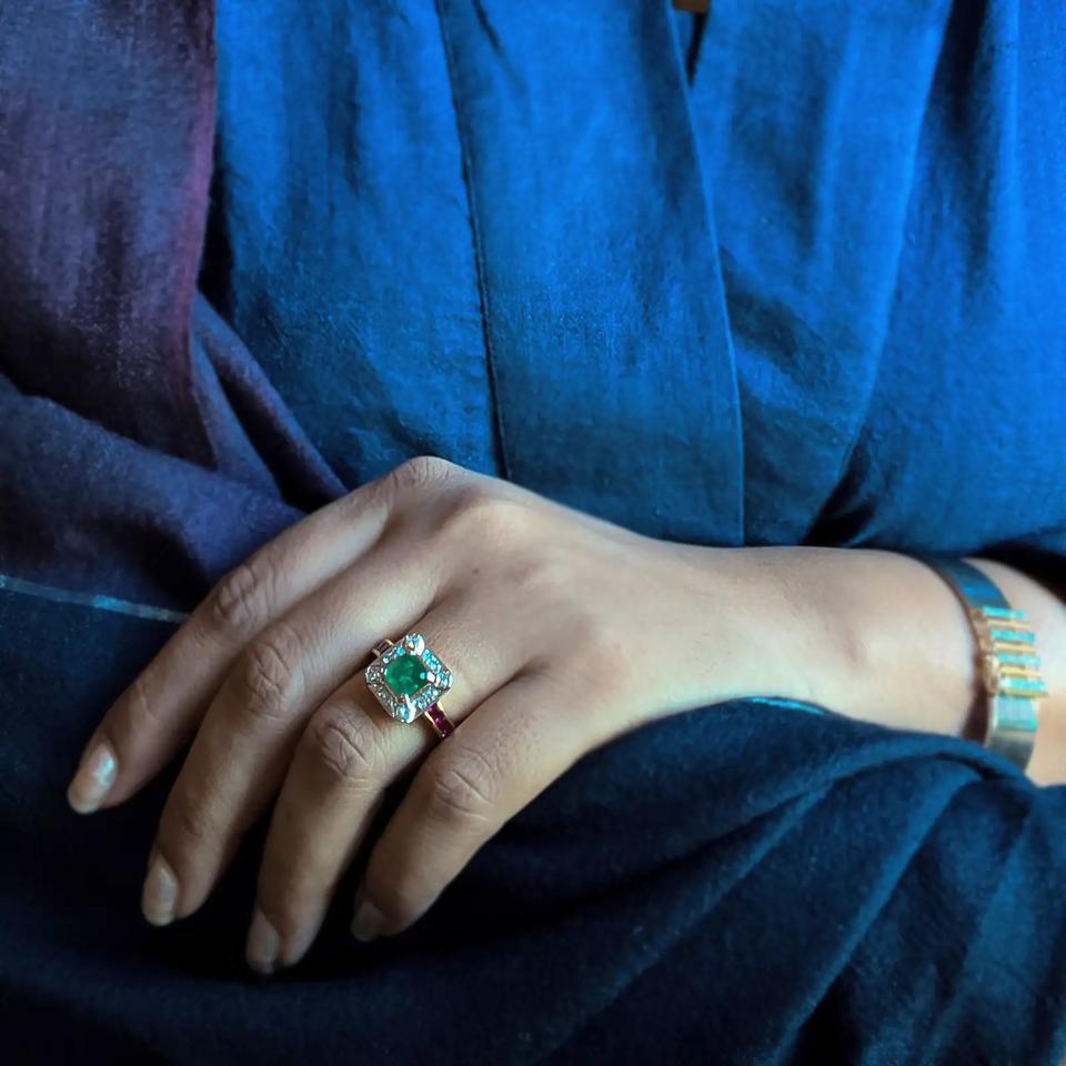 2.50 Carat Asscher Cut Green Sapphire Princess Cut Moissanite Engagement Ring Side Diamond Art Deco Vintage Wedding Ring Gold