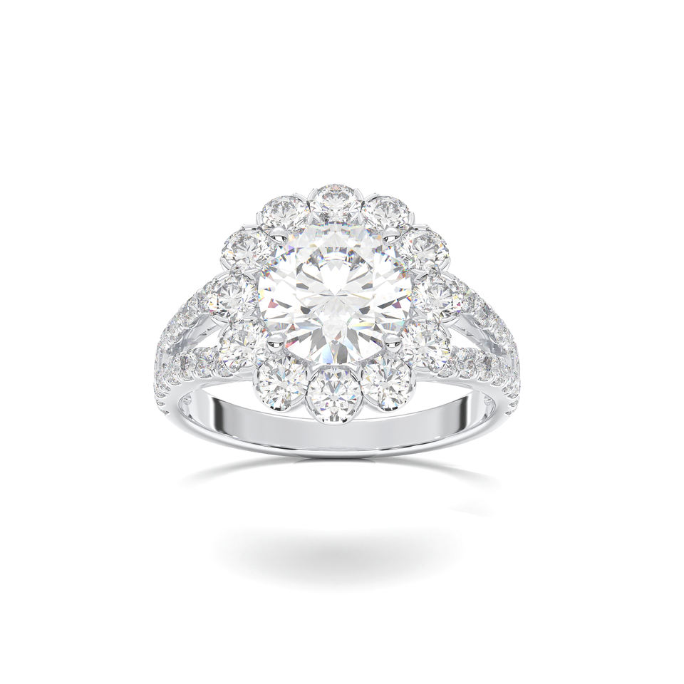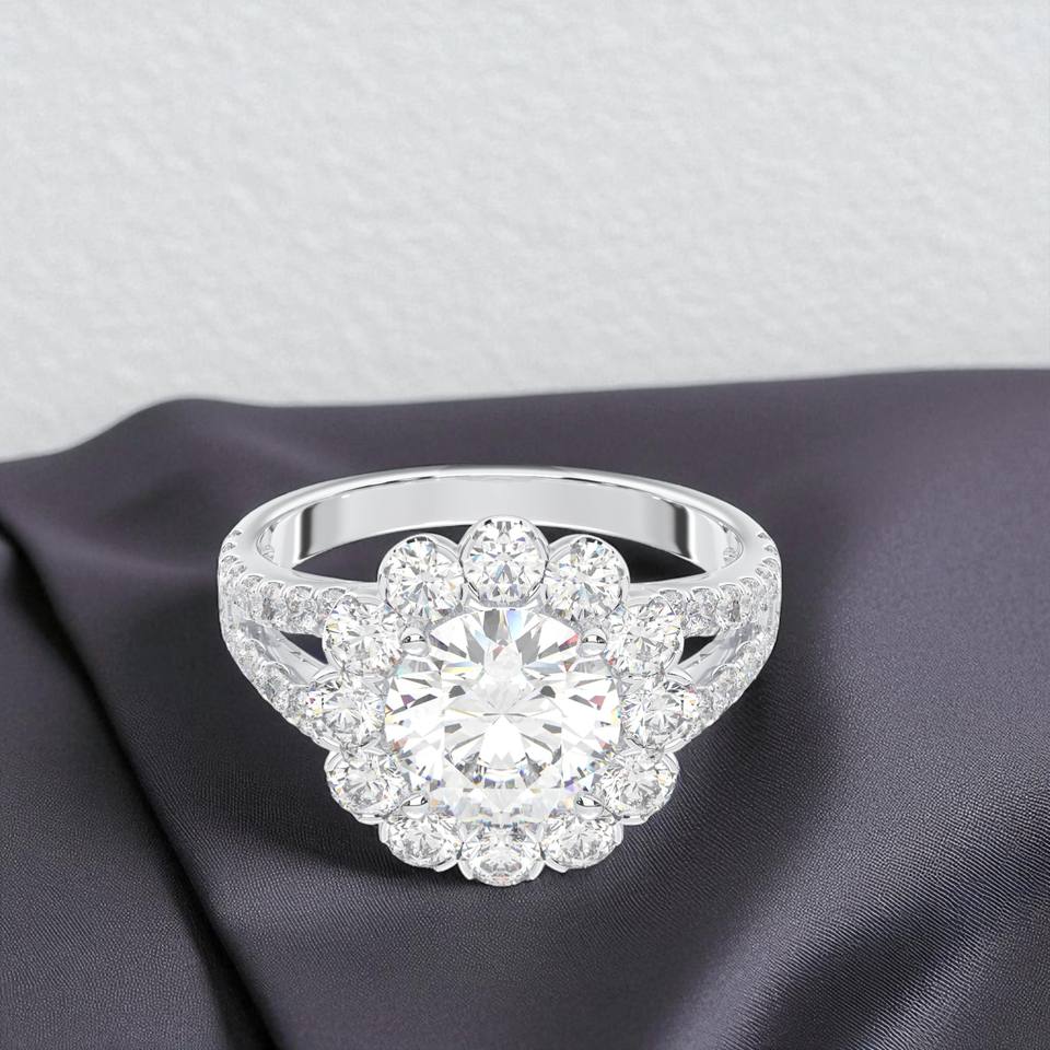 2.50 Carat E-F/VVS-VS Moissanite Round Cut Diamond Halo Engagement Ring Made in Platinum for Women
