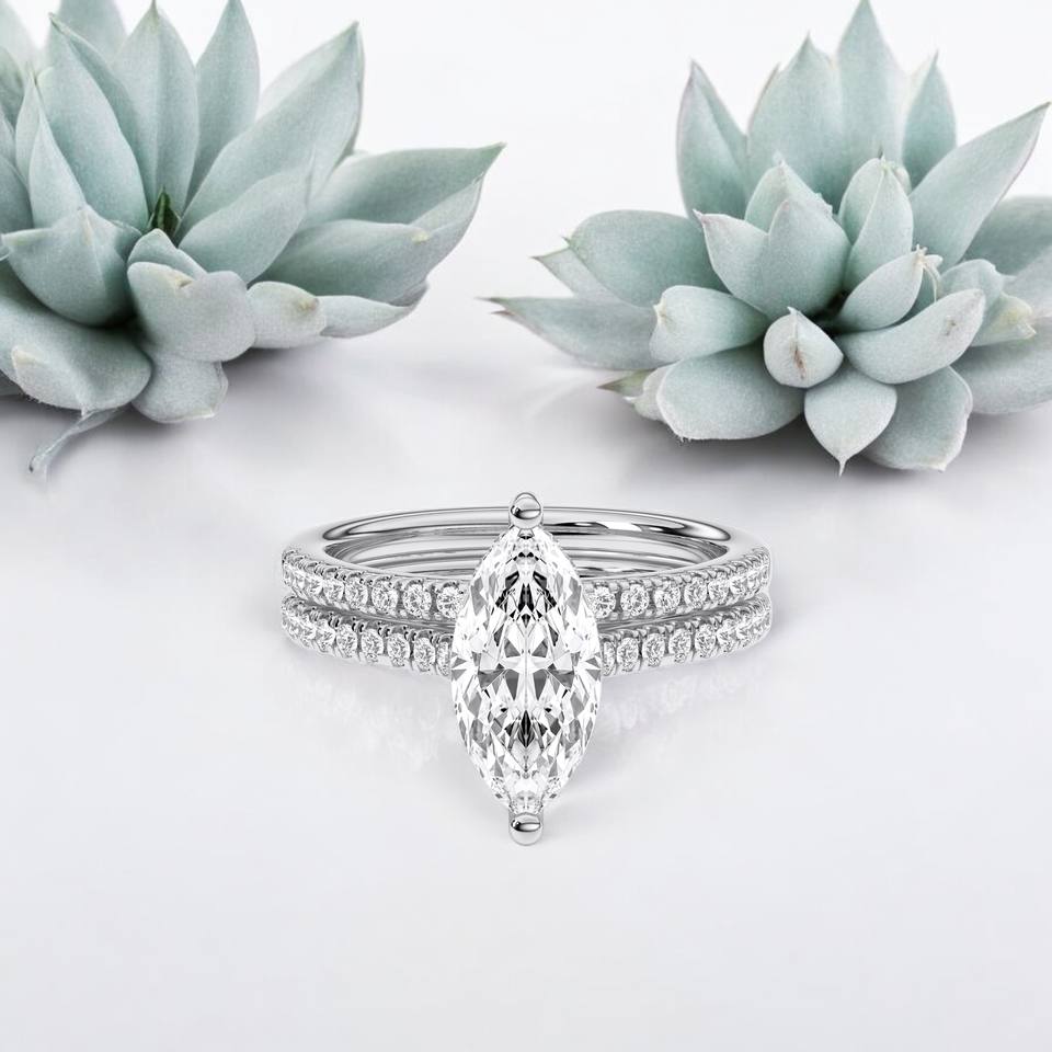 2.56 Carat F-G/VS Lab Grown Marquise & Round Cut Diamond Engagement Ring with Matching Band Unisex 10K/14K/18K Solid Gold