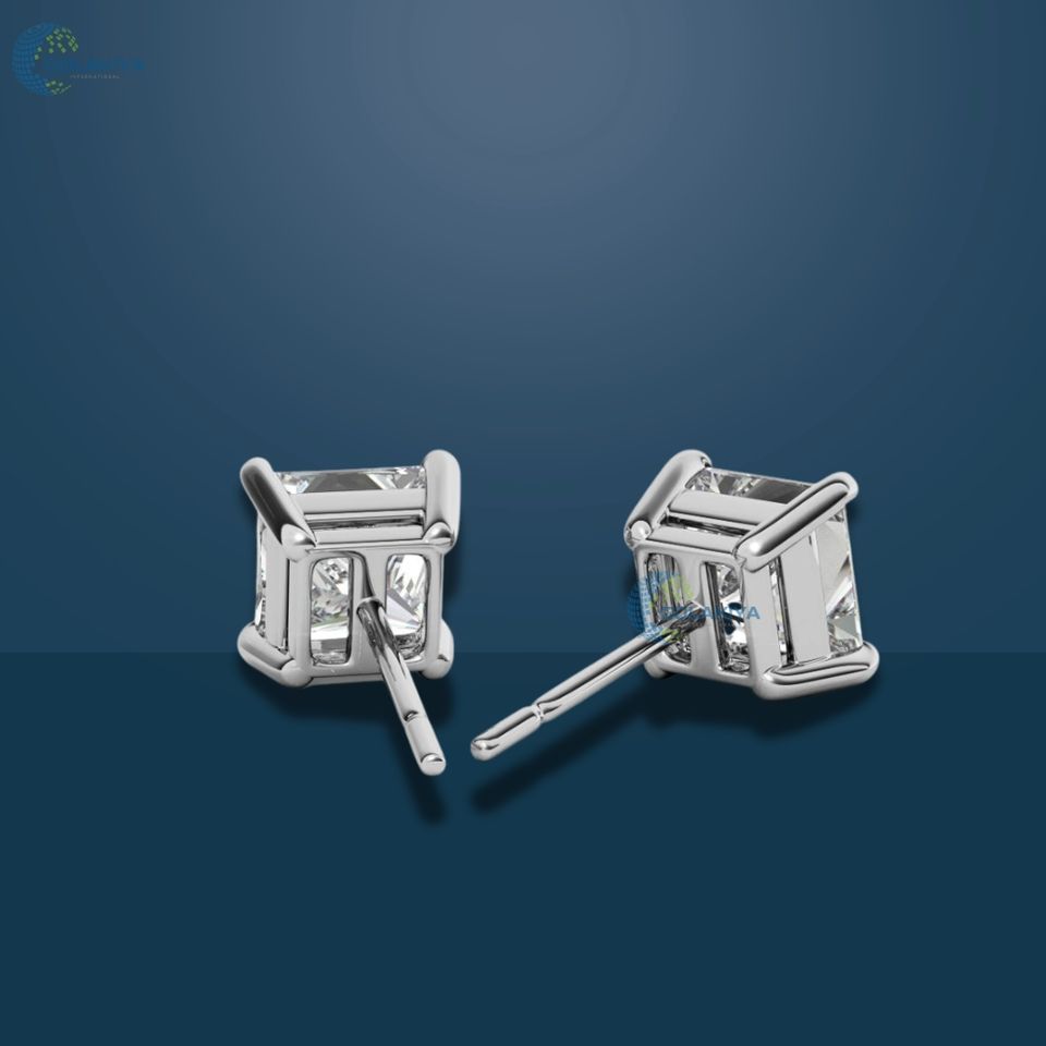 2.5TCW Princess Cut Moissanite Stud Earring 925 Sterling Silver Push Back Unisex Earrings