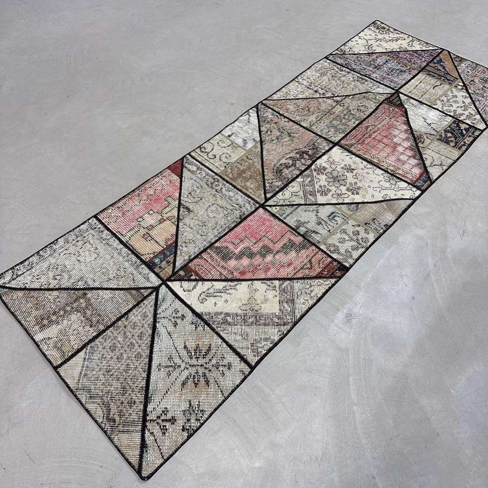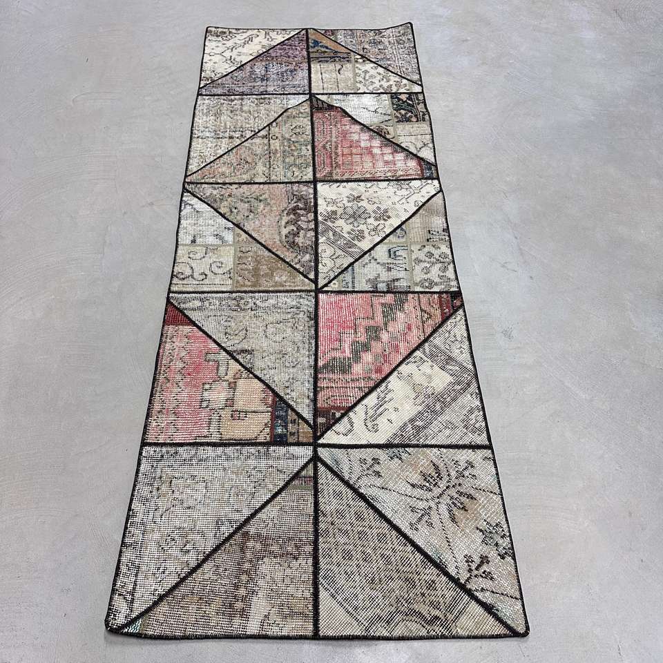 2.5x6.9 ft Rug, Runner Vintage Rug, Gray Abstract Rug