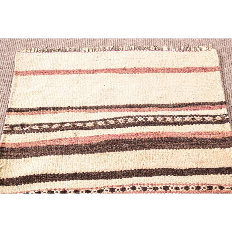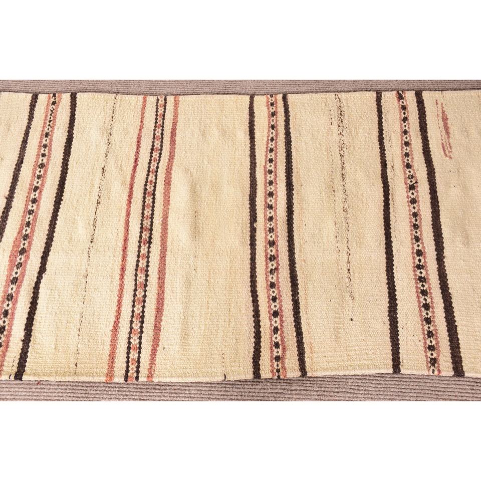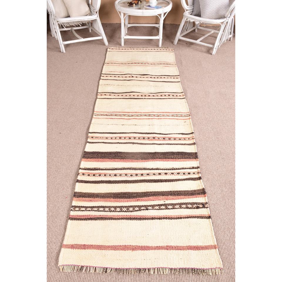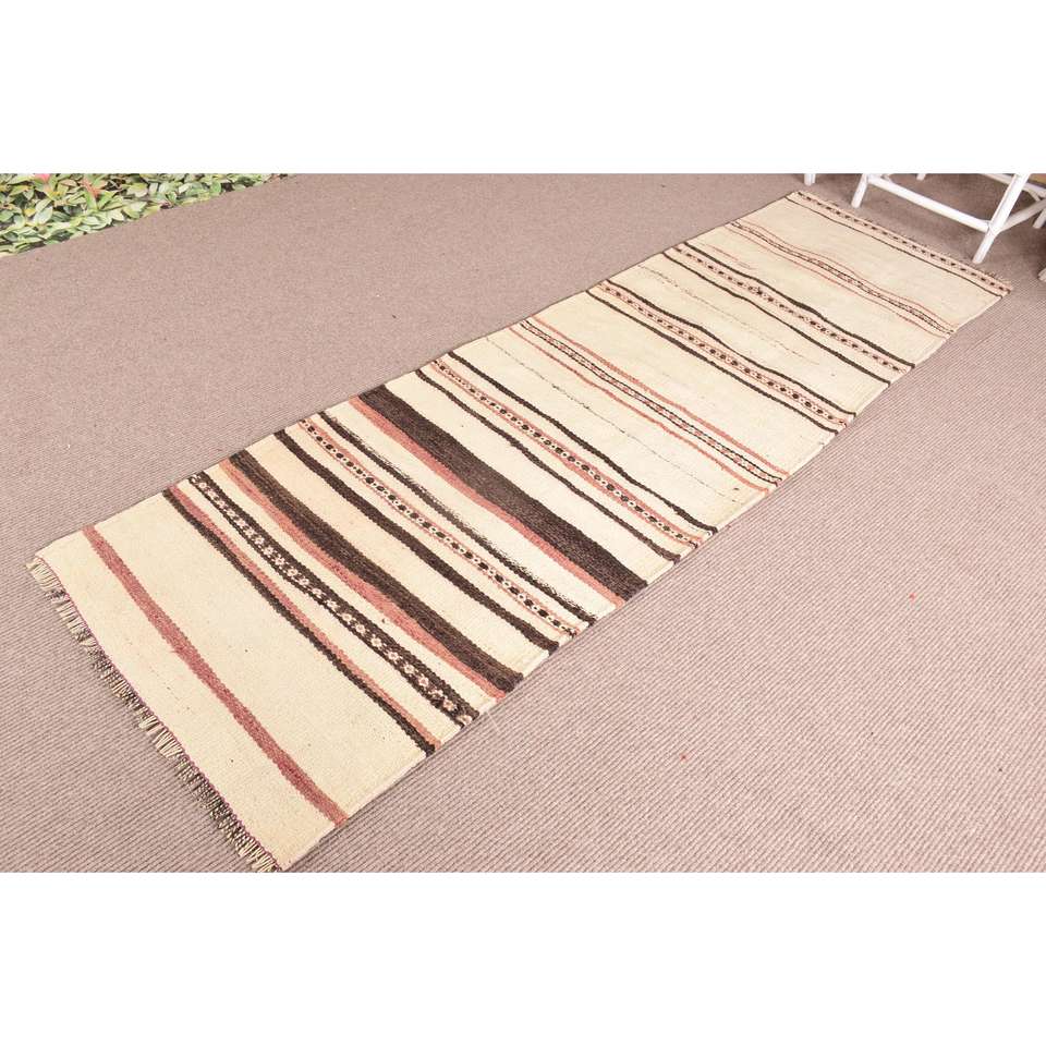 2.6x9 ft Runner Turkish Rug, Vintage Rug, White Brown Geometric Wool Rug