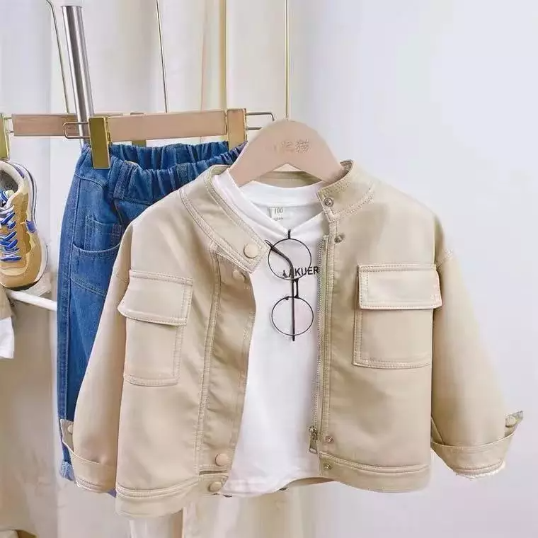 2-7 Years Wholesale Kids Pu Coat Brown Short Motorcycle Jacket Children's Clothing for Girls Leather Jacket Boys Coats Outwears