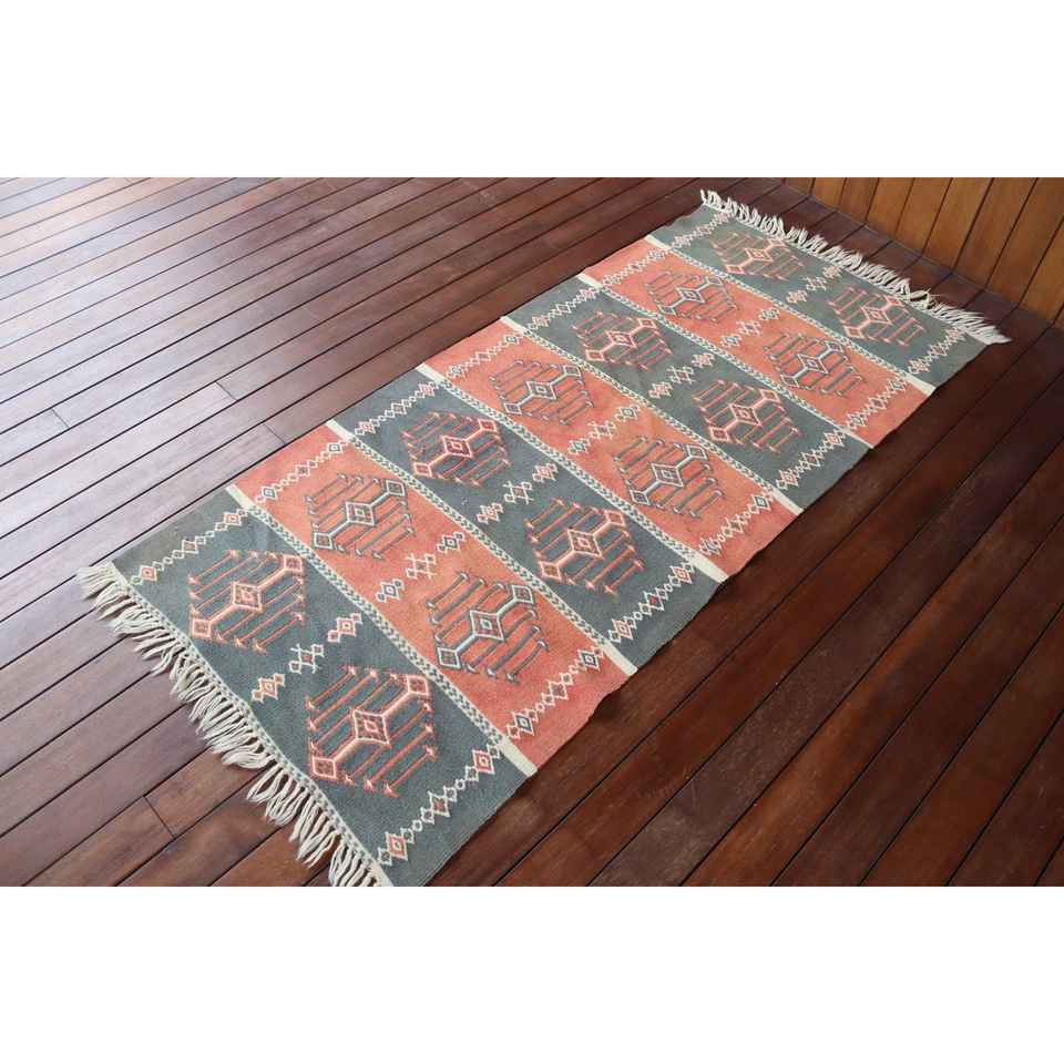 2,7x5,7 ft Rug, Turkish Vintage Rug, Red Floral Wool Rug