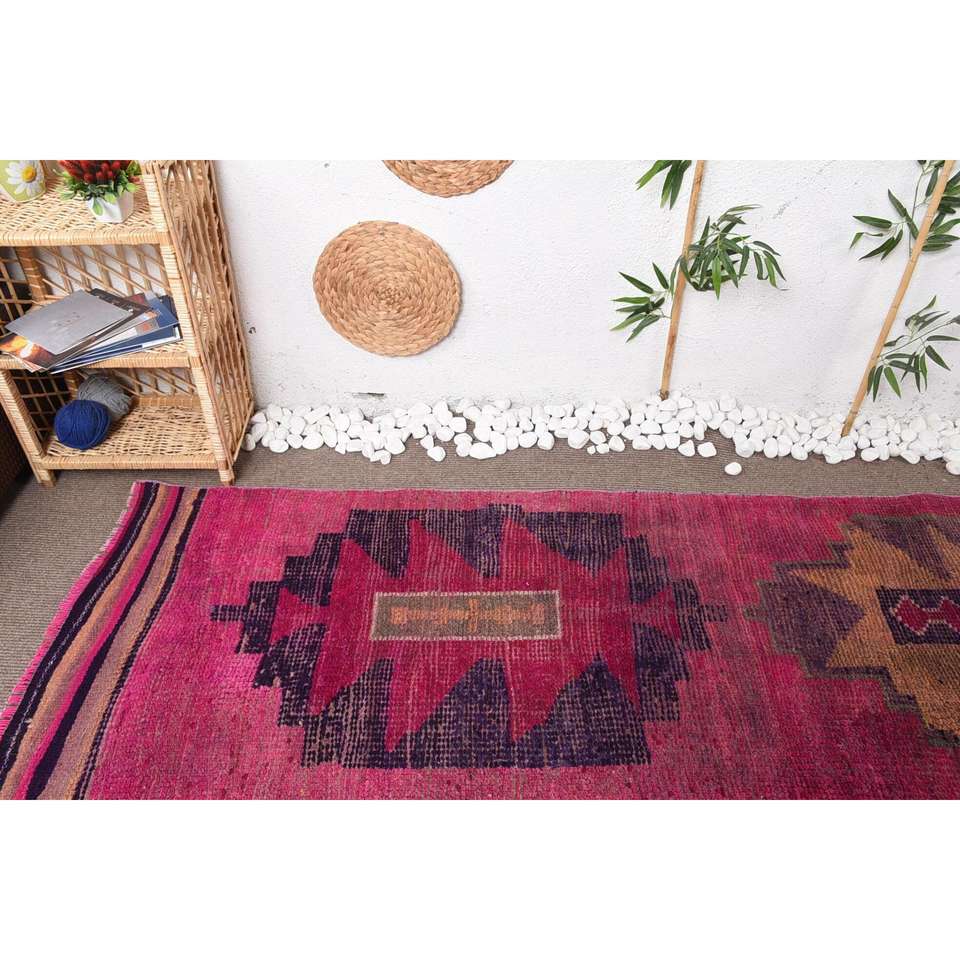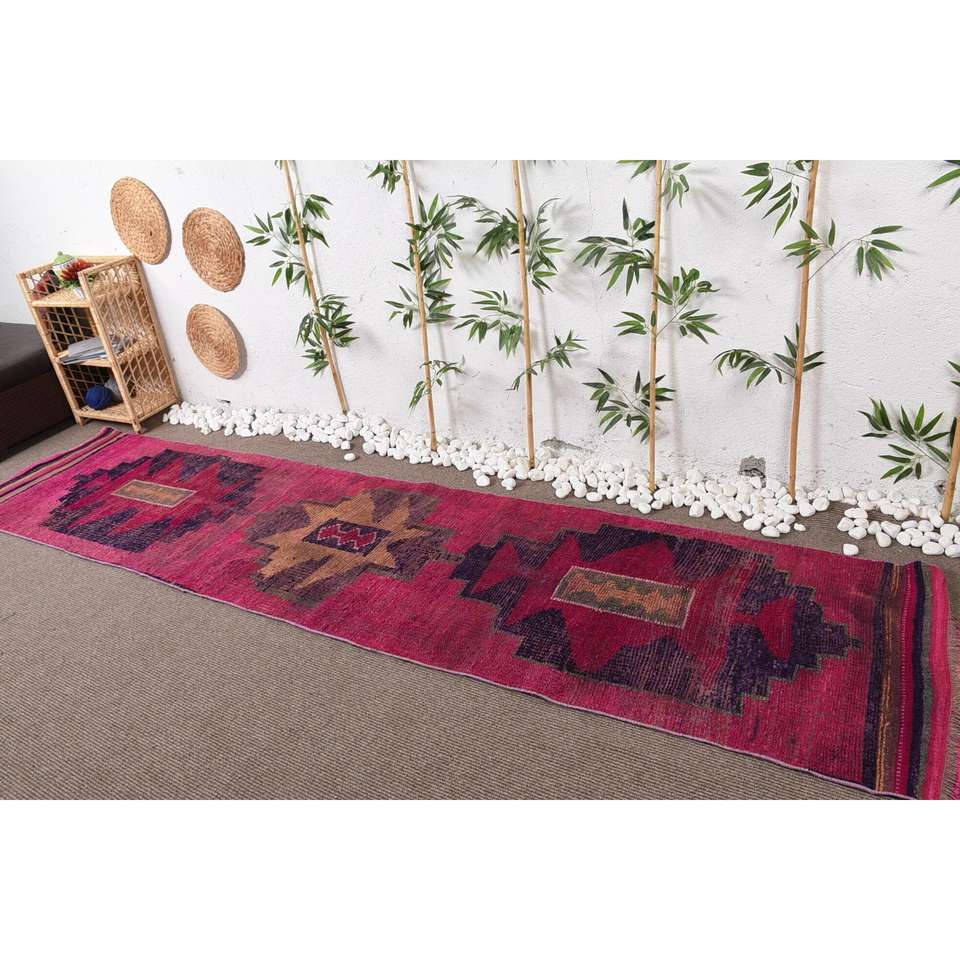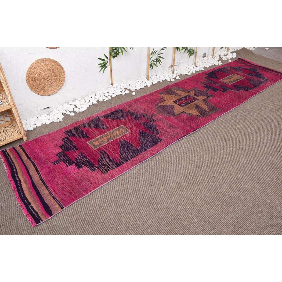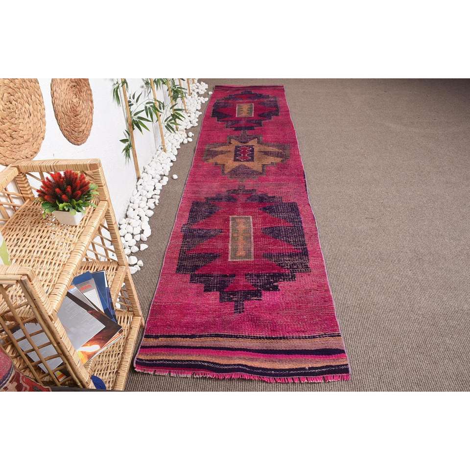 2.8x11.8 ft Turkish Rug, Runner Vintage Rug, Red Camouflage Rug