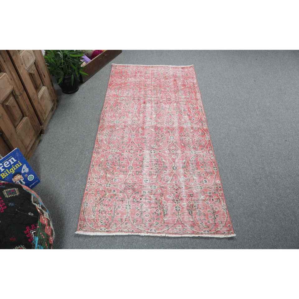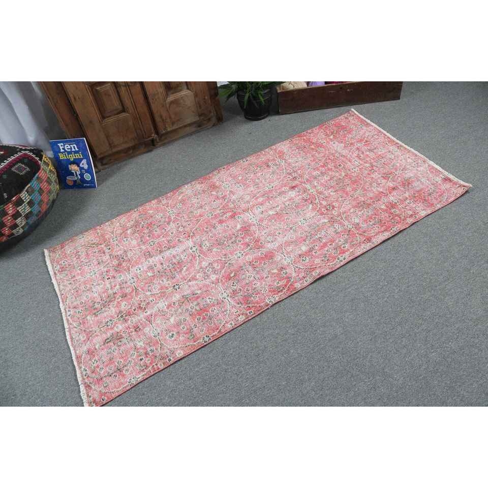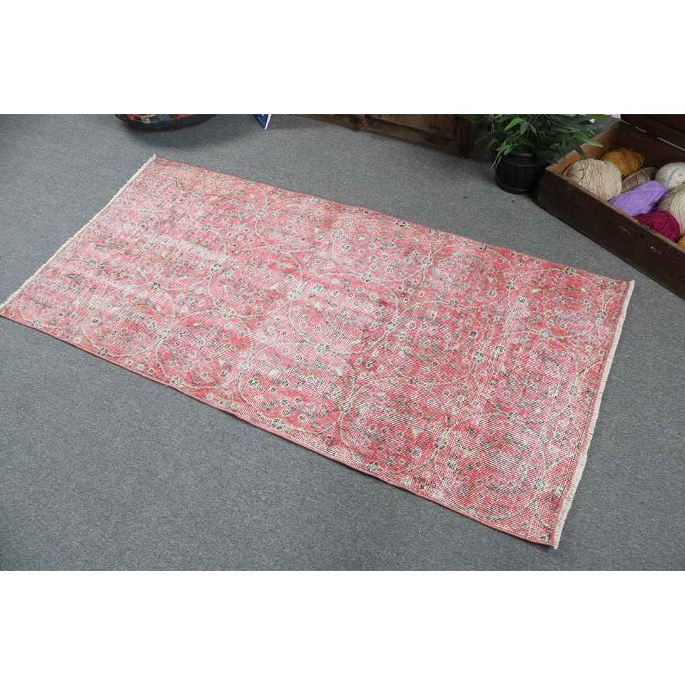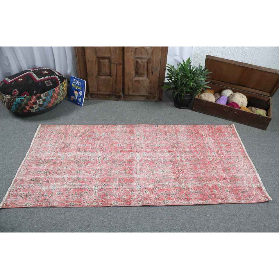 2.8x5.9 ft Turkish Rug, Vintage Accent Rug, Red Gray Patchwork Wool Rug