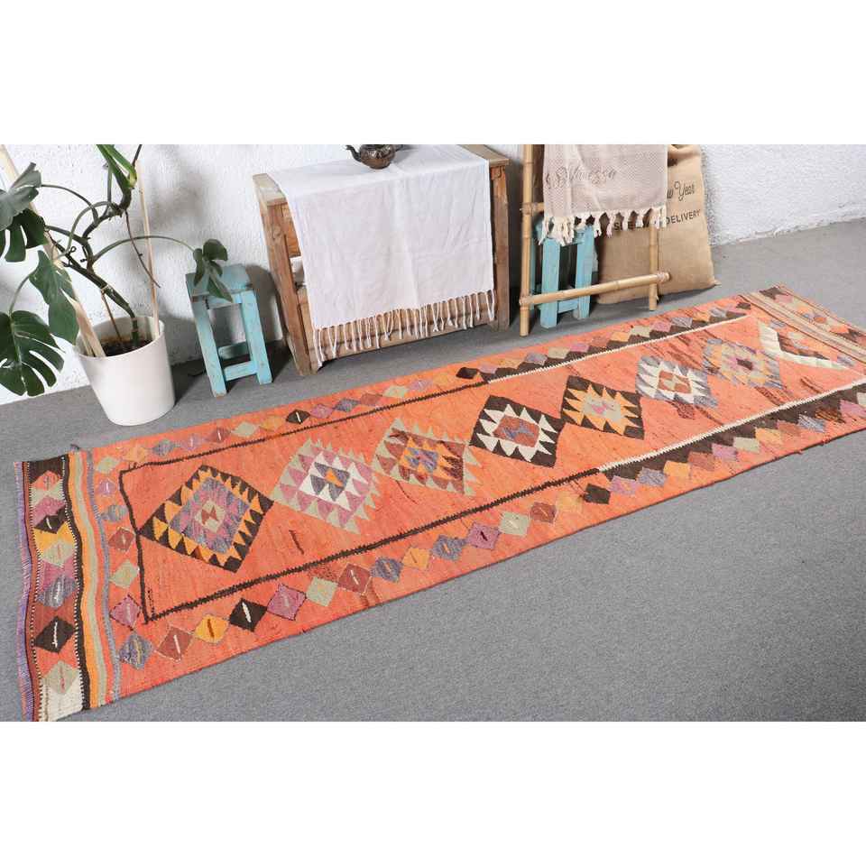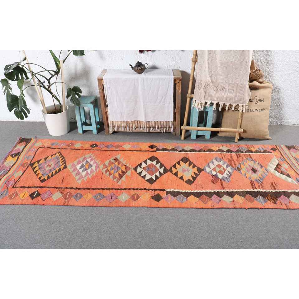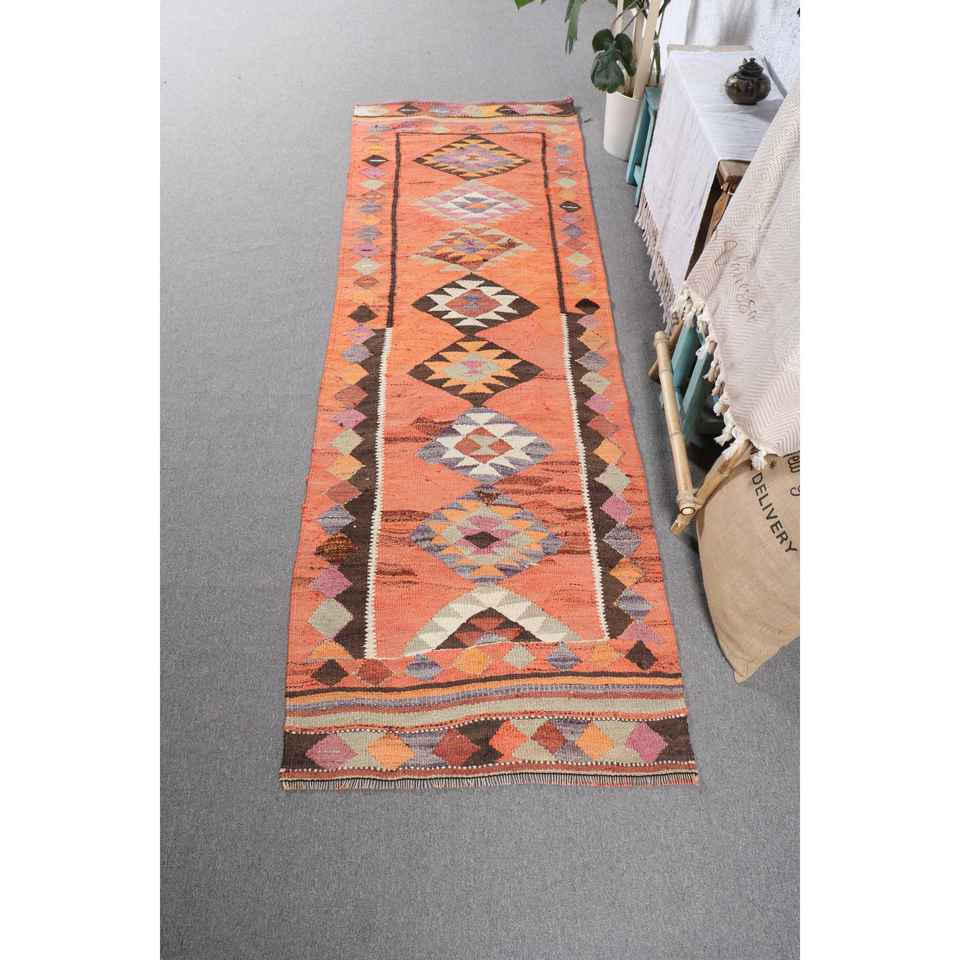 2.8x9.3 ft Rug, Turkish Vintage Rug, Red Polka dot Wool Rug