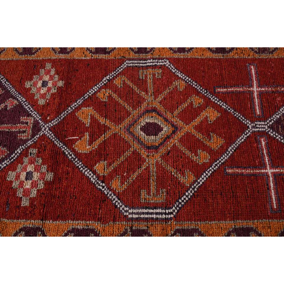 2.9x10.3 ft Turkish Rug, Vintage Runner Rug, Red Brown Floral Wool Rug