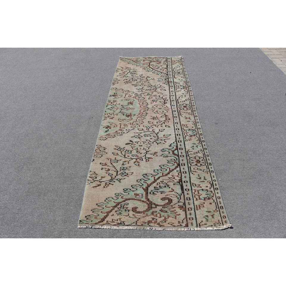 2.9x8 ft Vintage Rug, Rug, Brown Floral Rug Wool