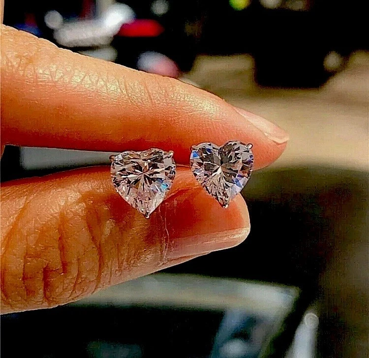 2 Carat Heart Shape Moissanite Luxury Stud Earrings for Women Set in Sterling Silver Push Back Design Brilliant 7MM Stones