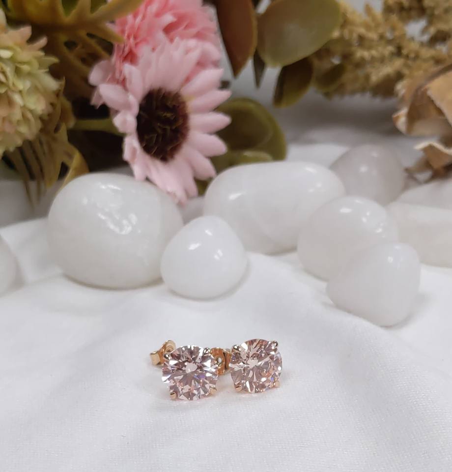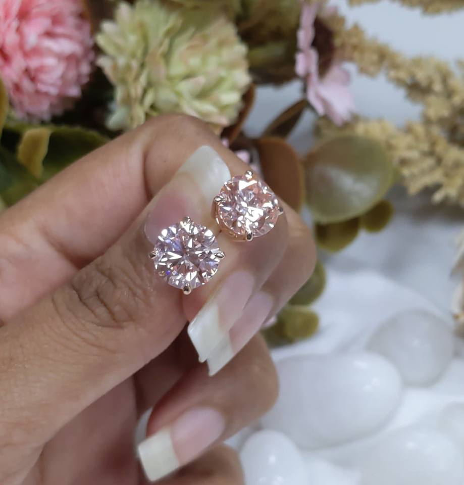 2 Carat Lab Grown Light Pink Diamond Stud Earrings Solid 14K Rose Gold Push Back Women's Earrings
