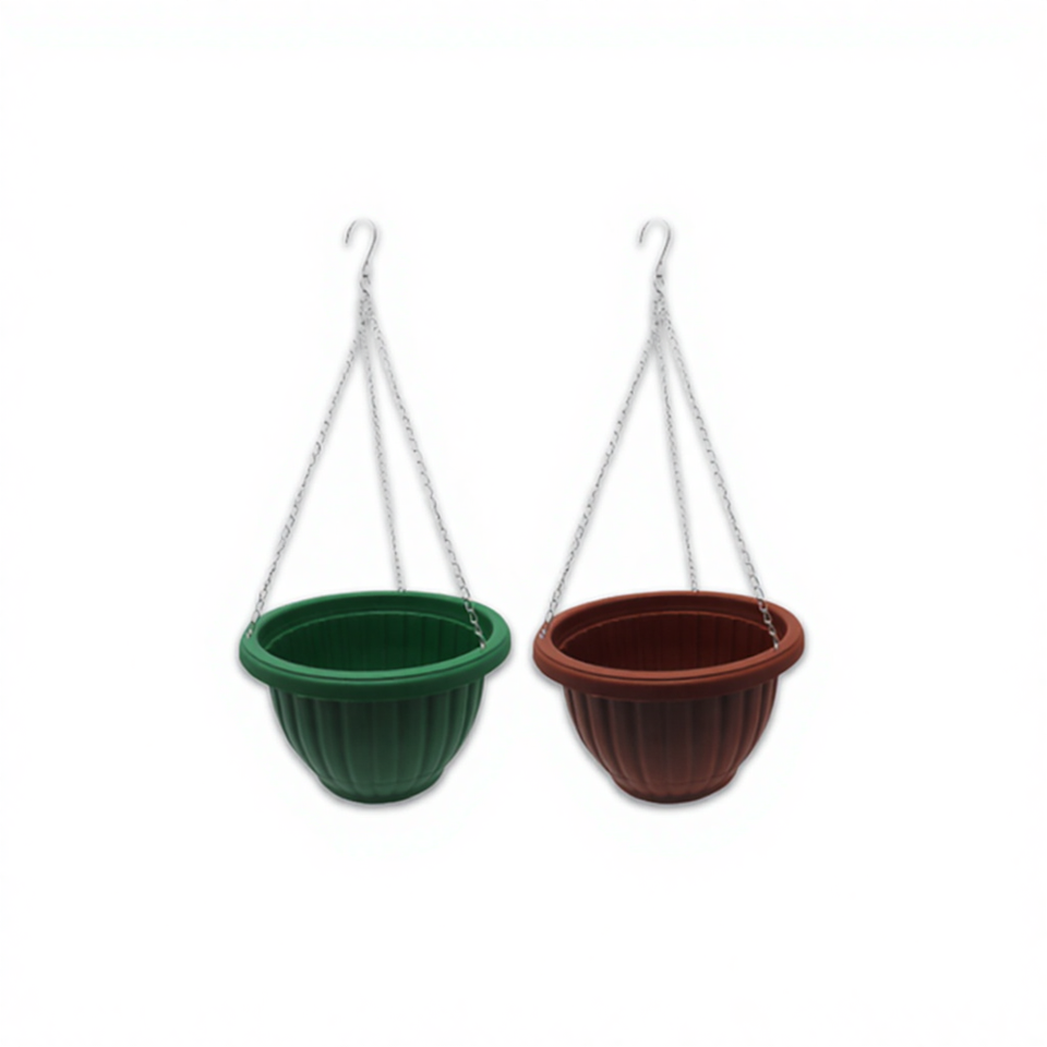 2-Color Plastic Hanging Basket 9.3"x5.5" Plant Pot Model GD-4015 for Indoor/Outdoor Use
