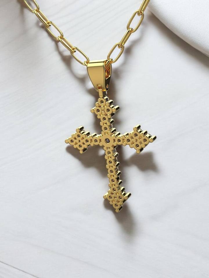 2 Ctw Round Cut Moissanite Diamond Cross Pendant Necklace In Gold Plated 925 Silver Minimalist Jewelry From Indian Supplier