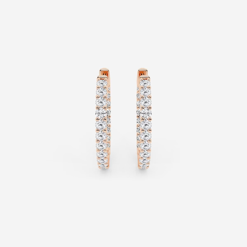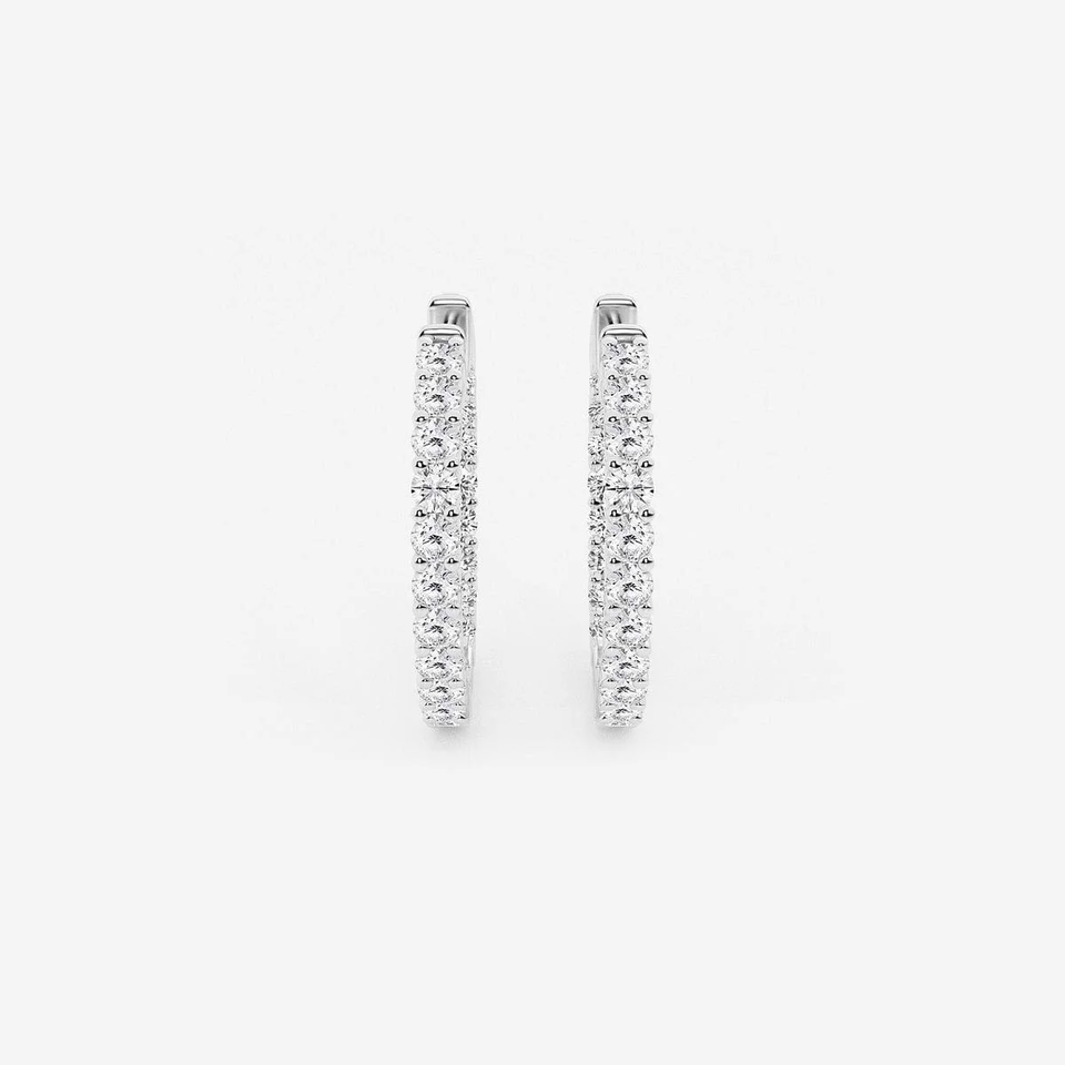 2 Ctw Round Lab Grown Diamond Inside Out Hoop Earrings For Women Elegant Sparkling Fine Jewelry Minimalist Luxury Gift