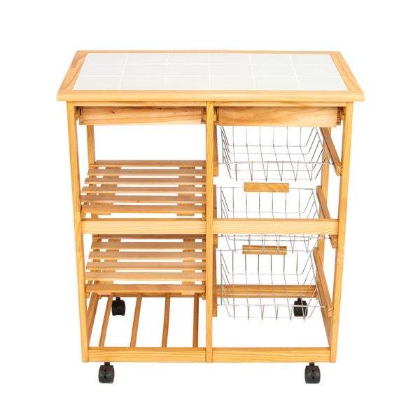 2-Drawer Wood Color Kitchen & Dining Room Cart with Rolling Wheels Removable Storage Rack for Islands & Carts