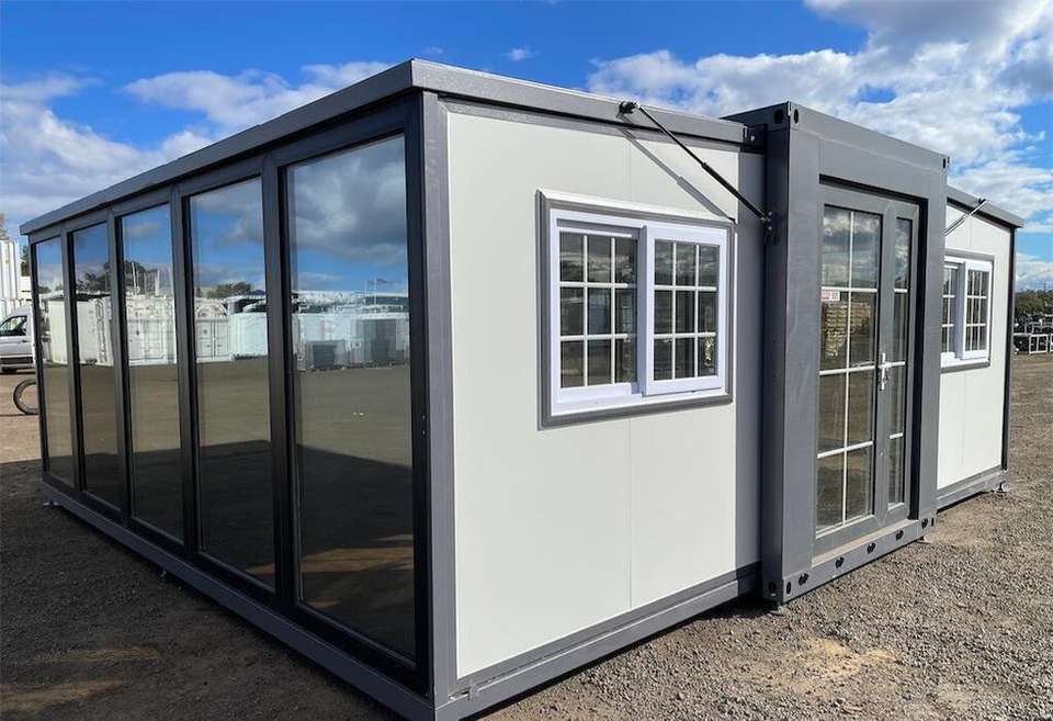2-Floor Expandable Container House 2 Ceiling-to-Floor Glass Walls Ensuite for Restaurant Dormitory Bar Steel Metal EPS Square