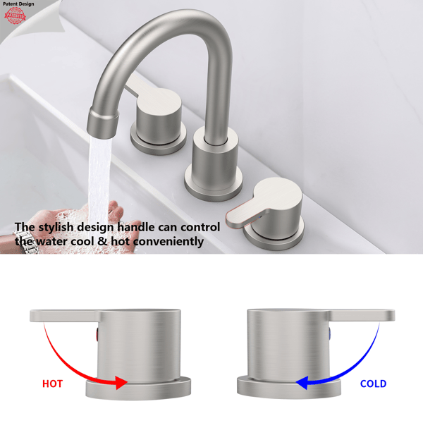 2-Handle 8-Inch 3-Hole 360-Degree Swivel Spout Widespread Brushed Nickel Bathroom Sink Faucet Pop Drain Vanity Basin Faucets