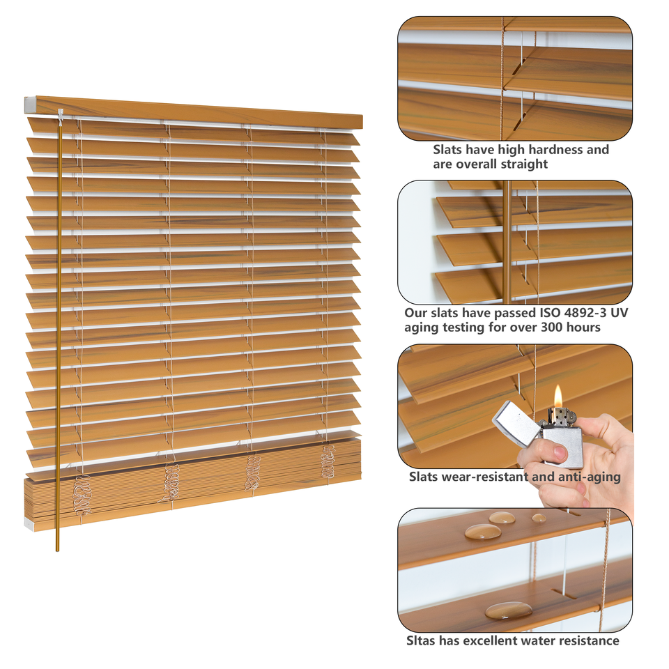 2 INCH Cordless PVC Faux Wood Horizontal Venetian Blinds & Shades Light Filtering Built-In Plain
