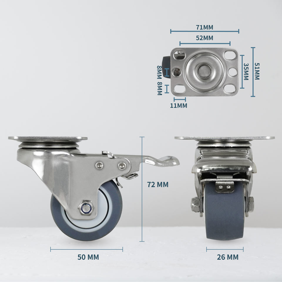 Product name:2 Inch 304 Stainless Steel TPR Locking Caster Wheel