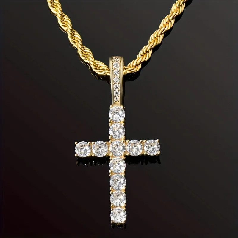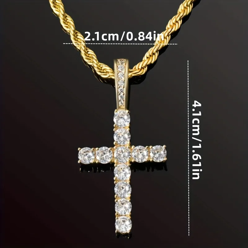 2 Inch Cross Pendant Necklace 925 Silver Round Cut Moissanite Iced Out Luxury Hip Hop Jewelry for Men and Women Party